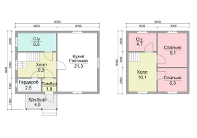 | Крыша | Двускатная, ломаная или вальмовая в соответствии с проектом. | Двускатная, ломаная или вальмовая в соответствии с проектом. |